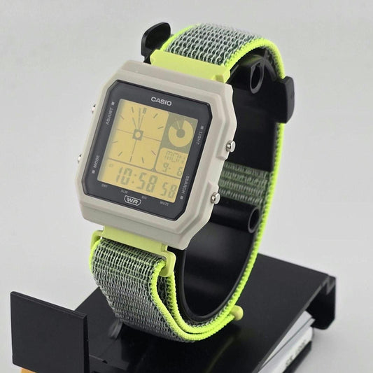 Casio LF20W-8A Modified | POP Lime | With Yellow Tint | Lime and Blue Nylon Loop Strap | Retro Style Watch Gift