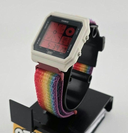 Casio LF20W-8A Modified | POP Rainbow | With Red Tint | Rainbow Nylon Loop Strap | Retro Style Watch Gift