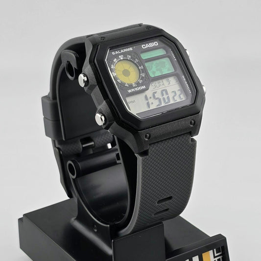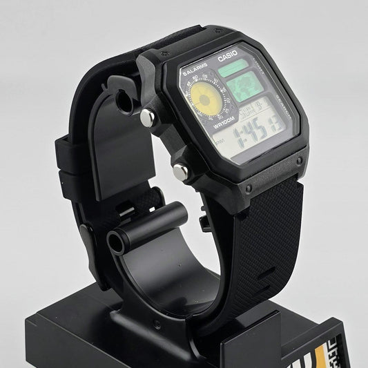 Casio AE-1200 Modified (Black). Color Filtered LCD Watch on Black Sports Silicon Strap