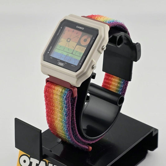 Casio LF20W-8A Modified | POP Rainbow Stripes | Rainbow Nylon Loop Strap | Retro Style Watch Gift